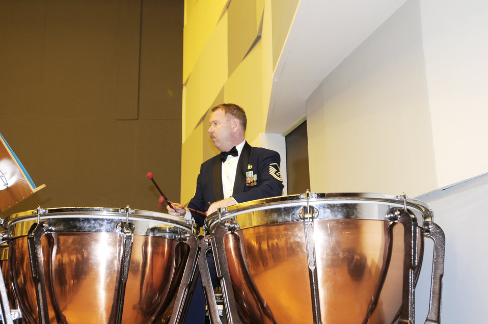 Master Sgt. James Bartelt plays the timpani drum during a U.S. Air Forces in Europe Band concert in Wroclaw, Poland, Oct. 20, 2009. The 41-piece band performed six concerts in Poland in support of the USAFE commander's international relations program in partnership with the U.S. State Department.