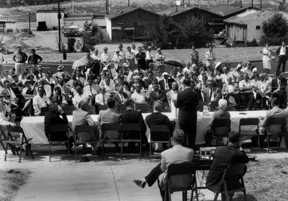 58-496-3 DOE photo by Ed Westcott Municipal Bldg. ground breaking ceremony Oak Ridge Tennessee 6-19-1957