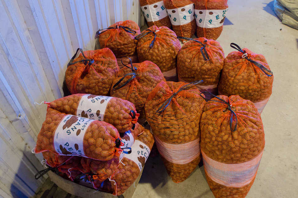 Five and 50 pound bags of pecans produced at Arrowhead Farms of Crystal City, TX, on Friday, December 9, 2011, owned by Mr. Akram Mohammad, a pecan farmer since 2005. The 719 acre farm with 10,000 trees, features some orchards with underground micro irrigation system that feeds water to the roots of 4,380 pecan trees on 146 acres. Mr. Mohammad said, âUSDA (U.S. Department of Agriculture) was essential to my business and trees surviving the recent exceptional drought. The trees were stress free thanks to underground micro-irrigation. This is essential to the future growth of Texas agriculture and good for America.â U.S. Department of Agricultureâs (USDA) Environmental Quality Initiative Program (EQIP) awarded Mr. Mohammad a $130,000 grant in 2008. He provided $26,000 for the balance of the $156,000 total cost to install a 146-acre underground micro-irrigation for 4,380 trees. USDA Photo by Lance Cheung.